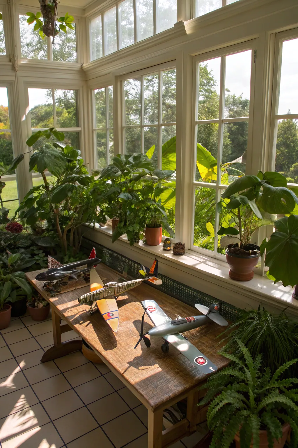 For a striking impression, attempt suspending models from the ceiling using transparent lines. This evokes a sense of aviation and introduces a whimsical element to any space.