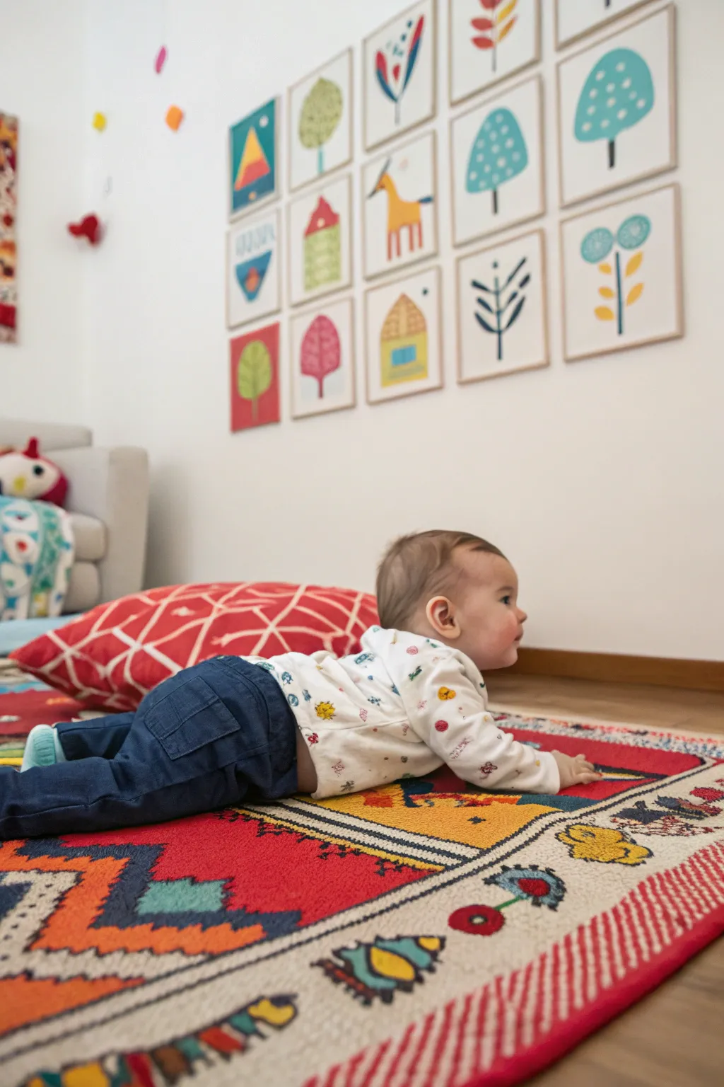 Present organic textures such as wooden playthings or plants to enhance the natural impression. I observe that these elements not only comfort the baby but also harmonize beautifully with any interior.