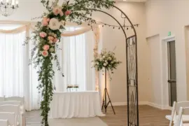 Think about employing a backdrop enriched with vibrant or pastel floral installations to evoke a garden-like charm indoors. I’ve consistently observed that intermingling diverse floral varieties introduces dimension and a dash of playfulness.