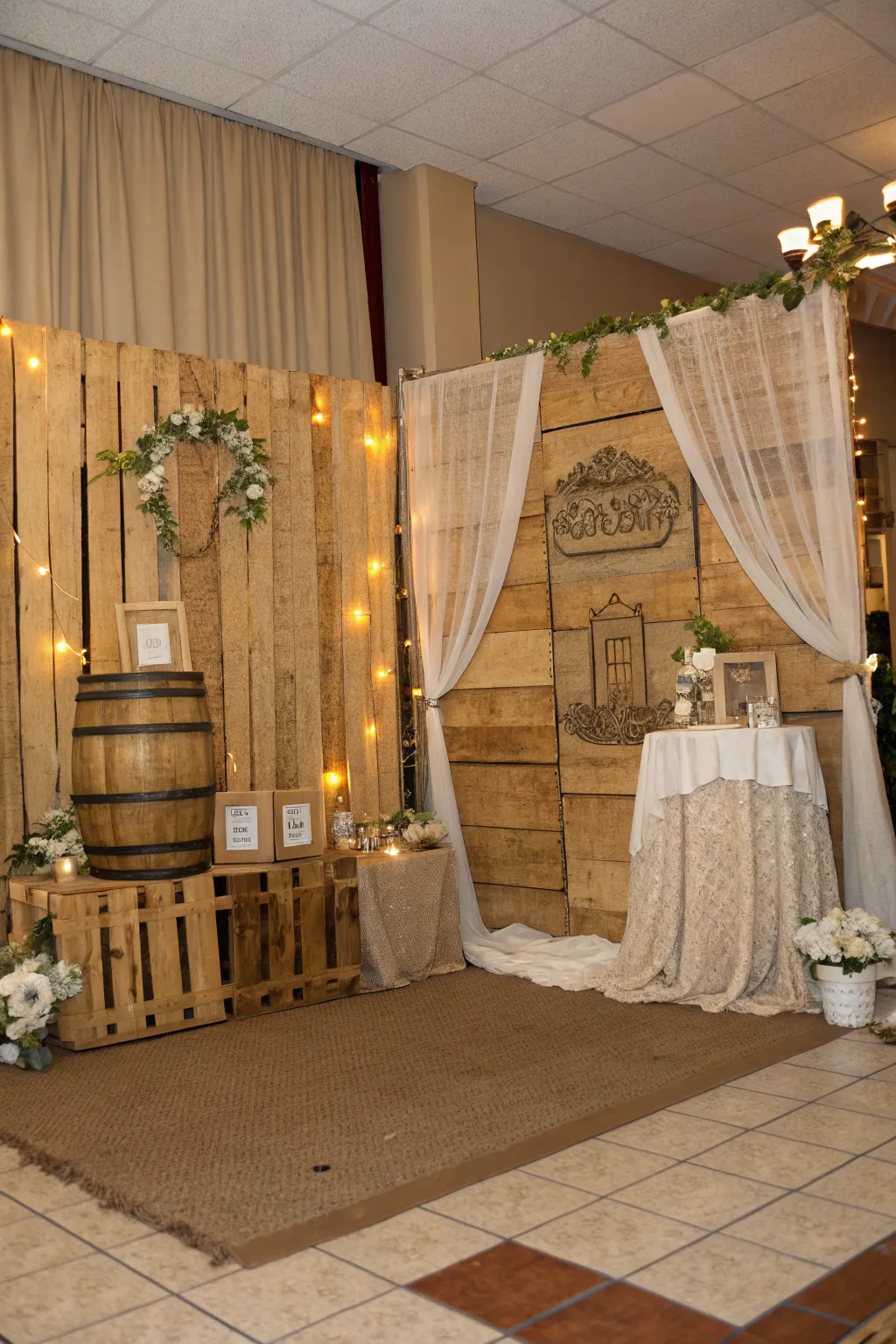 - Wooden Panel Background: Fashion a rustic ambiance with wooden panel backgrounds injecting warmth into your quinceañera décor.