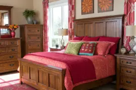 For a bohemian flair, choose a chandelier with natural fibers like rattan or jute. This style adds an eclectic and relaxed feel that’s perfect for a boho-inspired bedroom.