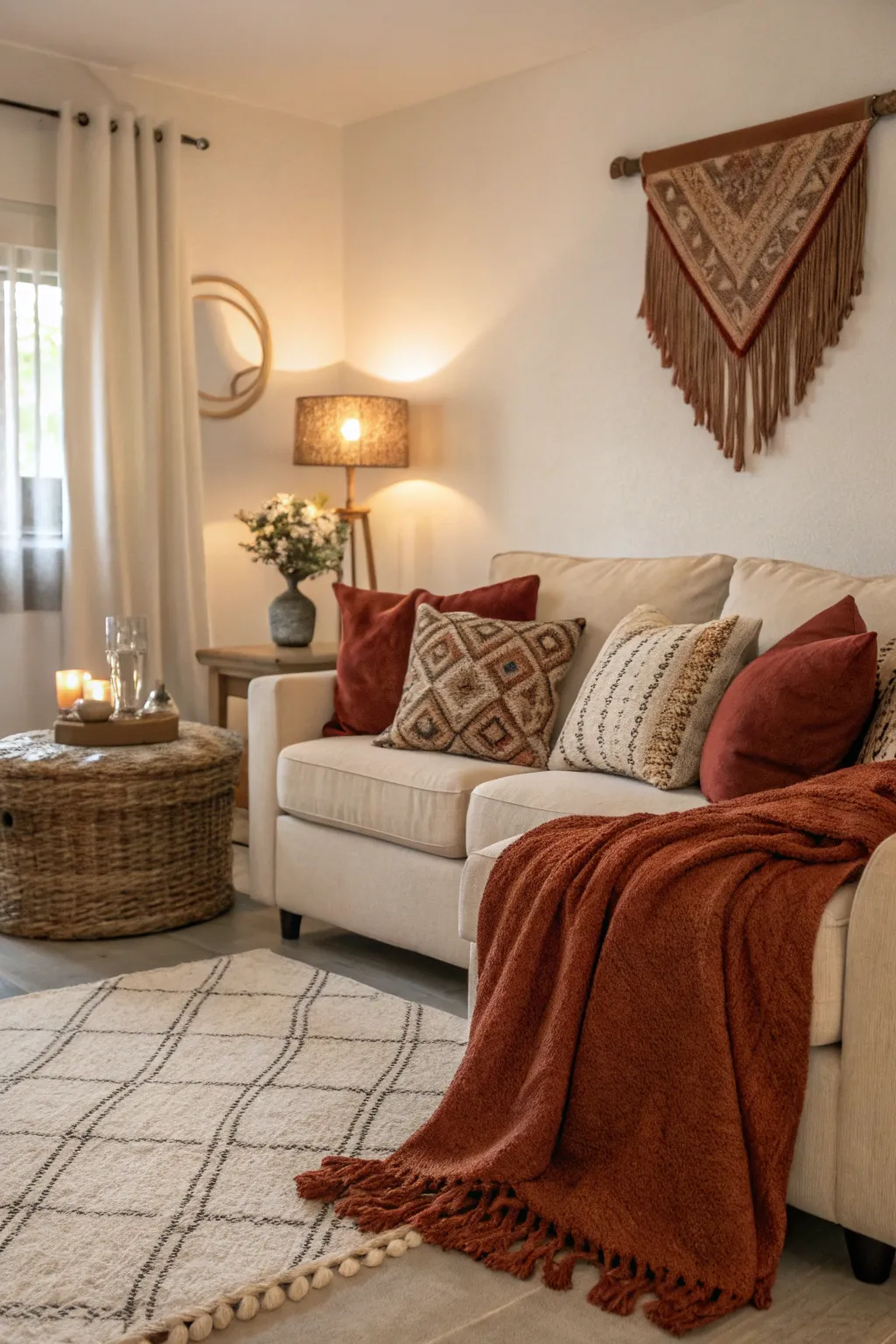 - Rust-Colored Overthrow: Introduce warmth and panache with a cozy rust-colored overthrow to your living space.