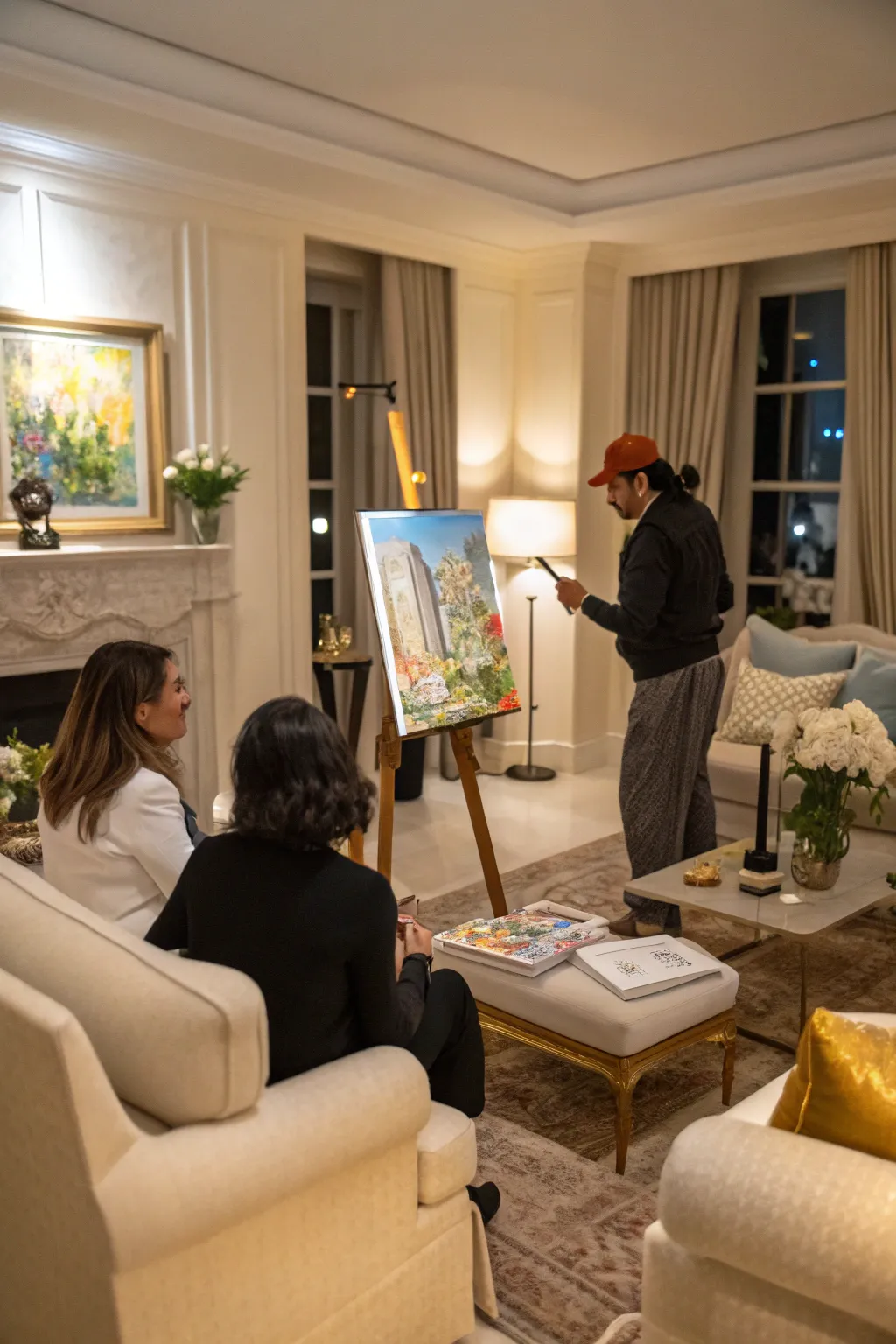 Present a surprise art display, such as a live painting or interactive art show. I find that unexpected delights enthrall guests and add an unforgettable aspect to the celebration.