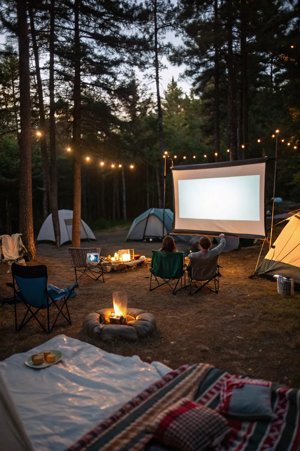 Enjoy a magical movie night beneath the stars with an exterior setup.