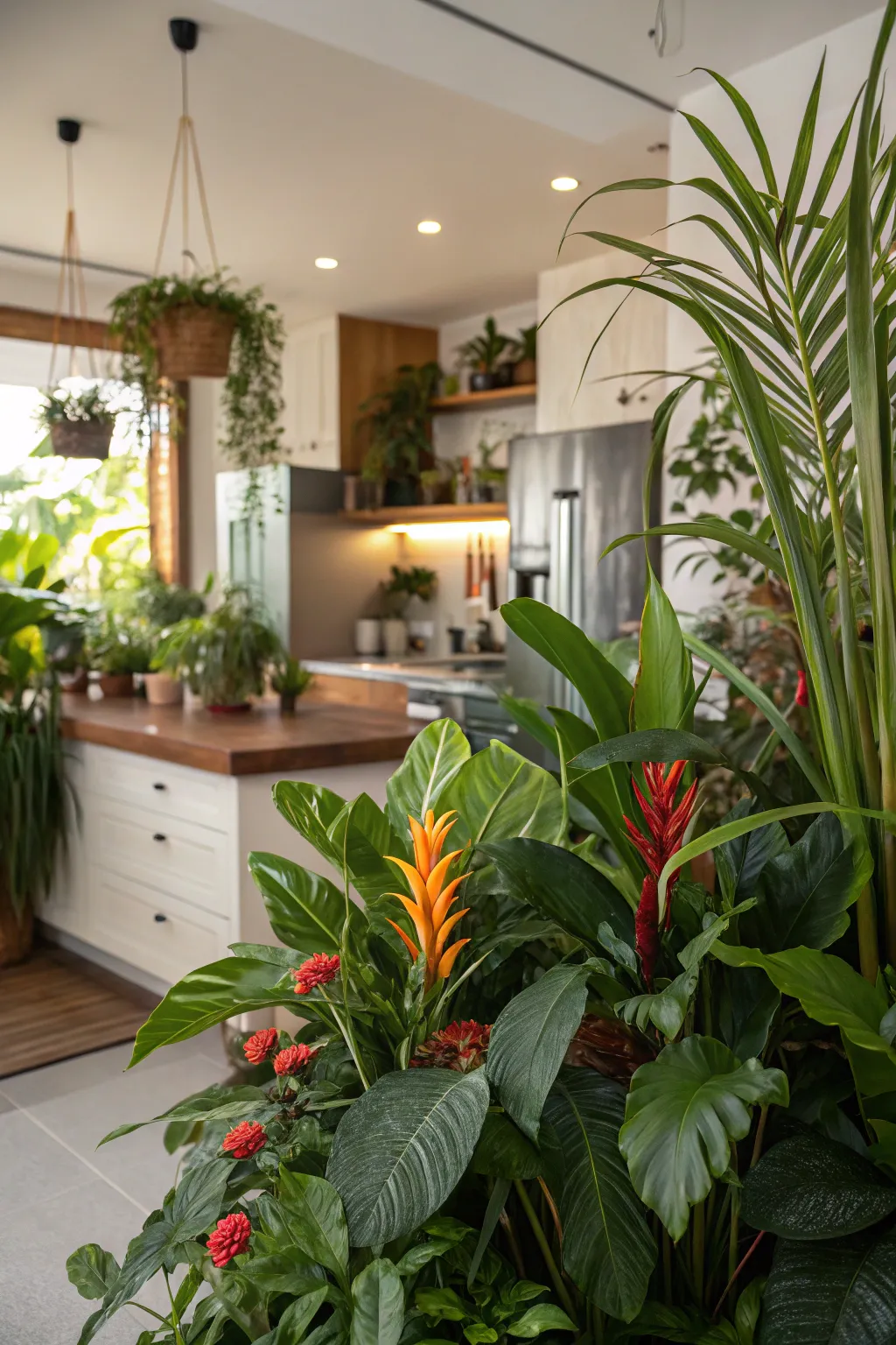 - Exotic Interior Plant Selection: To bring vibrant life to your kitchen, have a diverse collection of low-maintenance tropical flora.