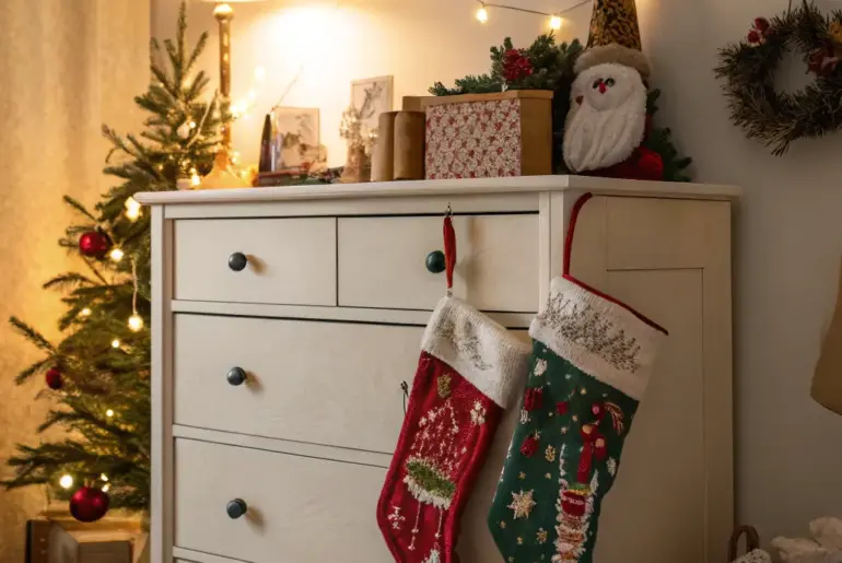 While a fireplace mantle is a traditional spot for displaying Christmas stockings, its absence shouldn’t limit your festive creativity. I’m excited to share some stylish and unique alternatives to showcase your stockings this holiday season. Refined Sideboards Sideboards transformed into elegant holiday focal points. A sideboard or console unit is a fantastic substitute for a traditional mantle. I often use mine to display stockings, complete with elegant garlands and ornaments. Explore these options: Festive Garland…