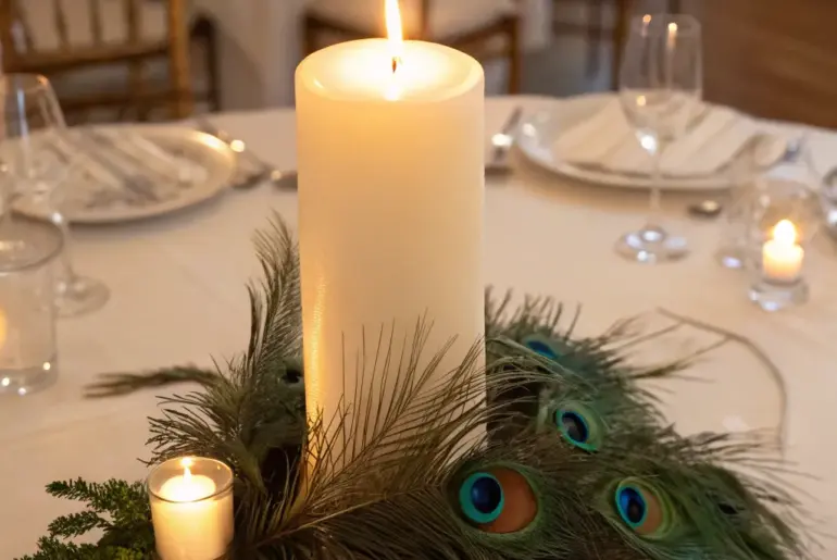 Plumes from peacocks provide a spectacular way to imbue any setting with vibrant color and refined beauty. Whether orchestrating a special occasion or simply looking to revitalize your living space, the following centerpiece concepts are certain to inspire. Country-Style Jar Set Rustic sophistication embodied in canning jars adorned with peacock feathers. Utilize canning jars with a lustrous metallic coating to showcase a selection of feathers, striking a balance between rustic charm and sleek sophistication. I…