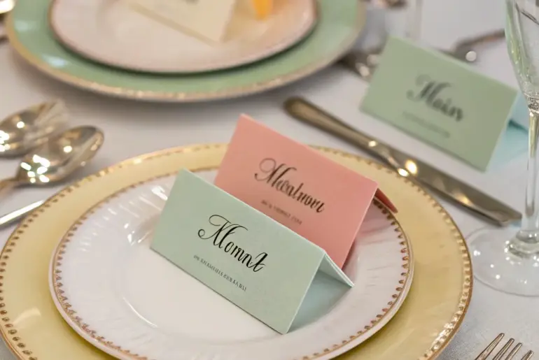 The finesse of a well-arranged dinner lies in the subtle details, and place cards are key to creating a memorable experience. Whether you aim for refined sophistication or playful charm, let these concepts inspire you. Bows and Ribbons Ribbons instill a romantic grace in your place cards. Affix your place cards with refined ribbons or bows for a romantic atmosphere. This effortless detail can instantly transform the overall aesthetic. A few helpful options: Silken Cord…