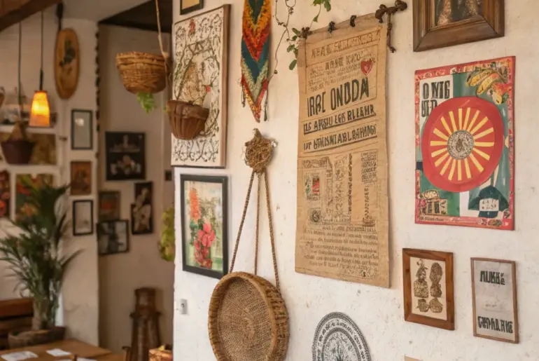 It’s simpler than you think to turn your walls into a haven of bohemian style. Let’s explore some imaginative concepts to bring that free-spirited and eclectic atmosphere into your living space. Position Stratified Textile Layers Cozy bohemian ambiance achieved through stratified fabrics. Introduce visual depth with layered fabrics such as rich tapestries and handcrafted macramé hangings. These add a comforting warmth and a tactile charm that instantly improves any room. You might like: Handcrafted Macramé…