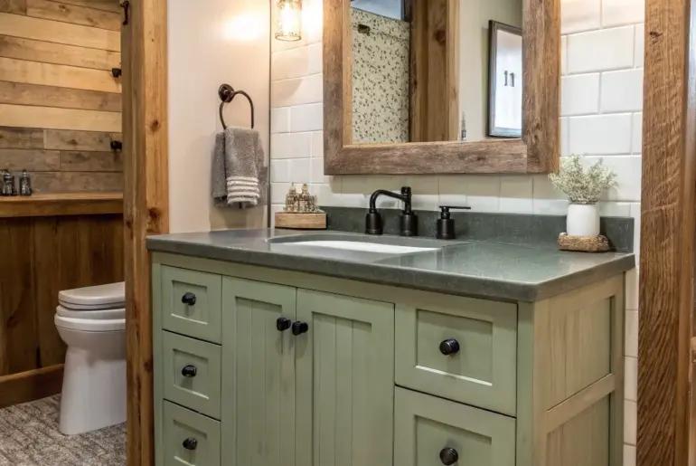 The enduring charm of sage green offers a peaceful ambiance to any lavatory. Let’s delve into inventive concepts for integrating a sage green washstand into your personal sanctuary, fostering a serene escape you’ll treasure. Match with Golden Fixtures for Sophistication An elegant lavatory featuring a sage green washstand complemented by golden fixtures. Golden fixtures introduce warmth and a trace of grandeur to sage green shades. In my layouts, I regularly employ golden spouts and robe…