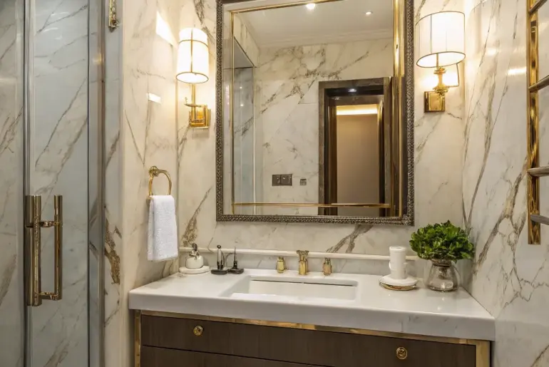 There is an undeniable allure to a bathroom adorned in black and gold. The striking contrast and rich hues come together to fashion a space that is both welcoming and elegant. Mosaic Embellishments in Ebony and Gold Mosaic embellishments in ebony and gold introduce elegance and texture. Employ mosaic embellishments in ebony and gold to forge elaborate designs that heighten visual intrigue and sophistication on your restroom floors or walls. Products that could assist: Sheets…
