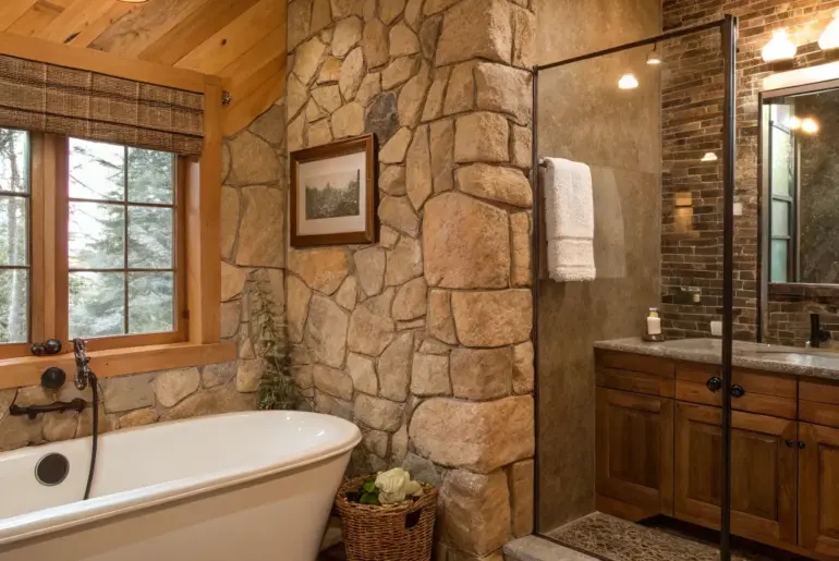 Turning a simple log cabin bathroom into a delightful, inviting space presents an exciting opportunity. By carefully selecting the right design features, you can achieve a harmonious blend of homespun charm and understated luxury. Add Granite Features A log cabin bathroom featuring a granite sink and a pebbled shower base. The rustic feeling gets a boost from adding granite elements such as a granite sink or a pebbled floor in the shower. This touch pays…