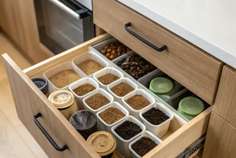 Developing a dedicated coffee drawer in your kitchen can revolutionize your morning ritual, rendering it both streamlined and pleasurable. Let’s delve into some elegant and functional concepts to enhance your coffee storage arrangement. Condiment Sections Condiment sections expedite your coffee formulation. Arrange sugar sachets, creamers, and mixing implements within independent sections to uphold a neat configuration. This setup guarantees an expedited and seamless coffee preparation venture. Try these: Adaptable Drawer System: Effortlessly maintain the organization…