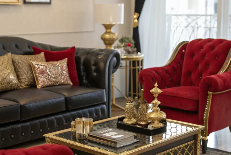 Designing a captivating living room with a black and red scheme resembles composing a timeless work of art. This striking combination has the potential to transform any area into a stylish and dramatic sanctuary. Layered Lighting Layered lighting enriches the atmosphere. Employ layered lighting to formulate depth and atmosphere. I’ve discovered that multiple illumination sources can transform a room’s ambiance from monotonous to marvelous. Might be a good match: Versatile Upright Lamp featuring a Scarlet…