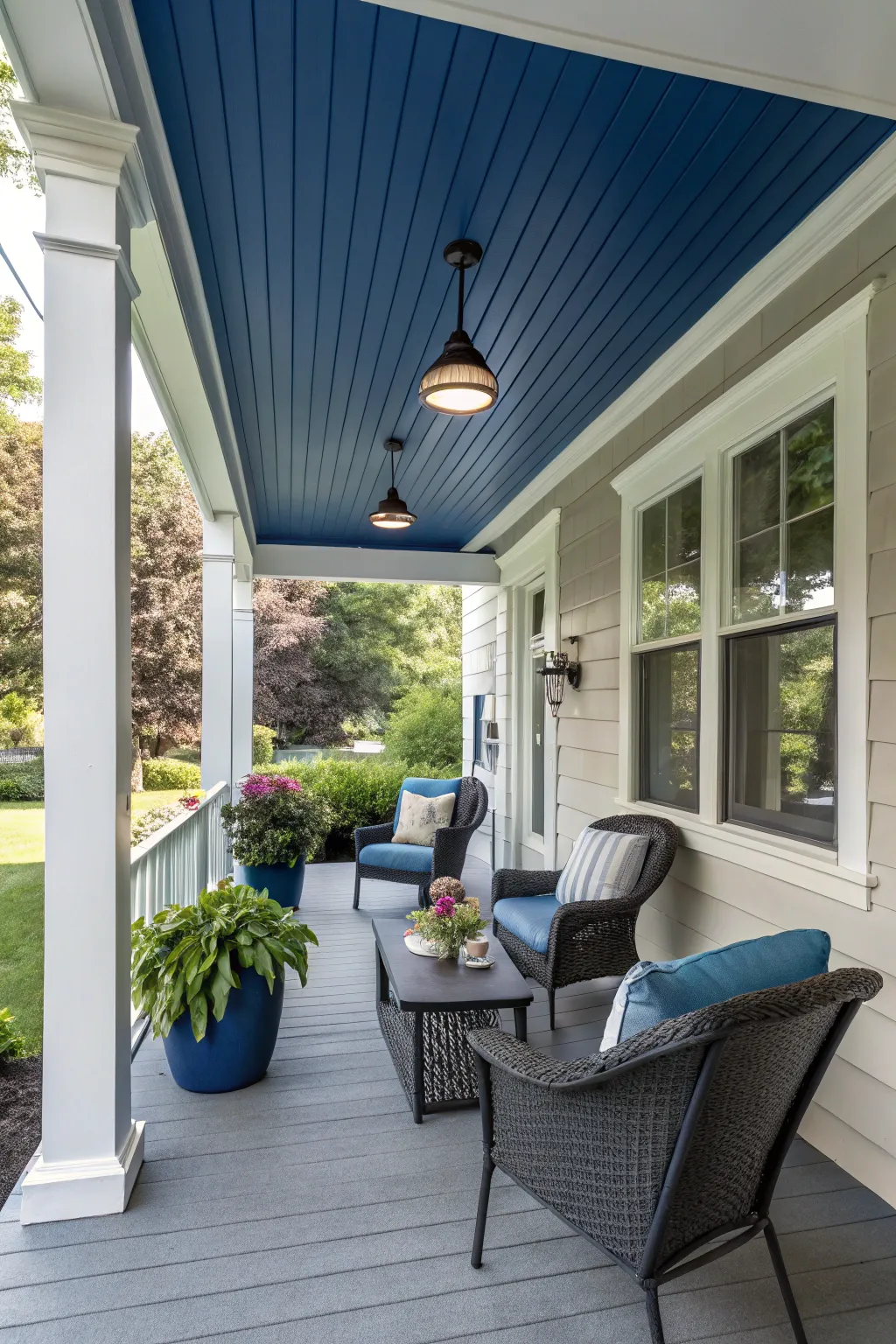 A vibrant vinyl ceiling can truly distinguish your porch.