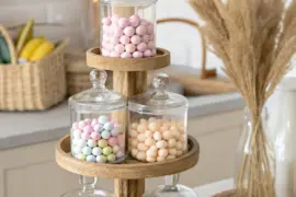 Present an artful bowl as your table’s highlight, populated with decorative elements such as stones or shells. I often refresh the contents to reflect my current mood and the specific occasion.