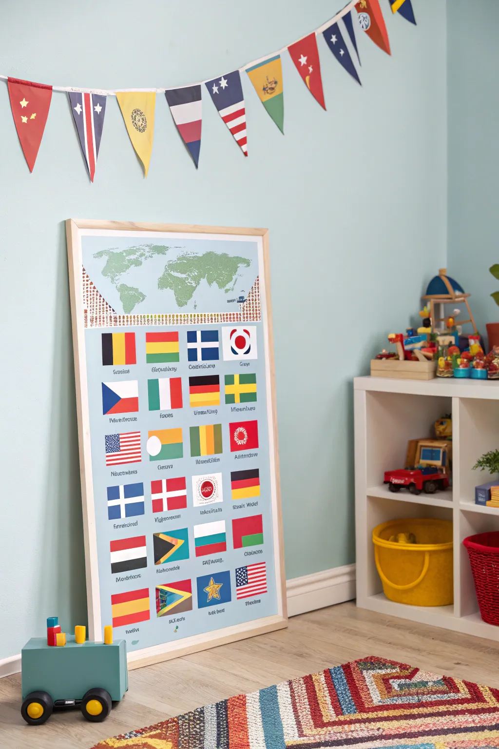 A collection of global flags can be both vibrant and educational. In my experience, such a display sparks curiosity and adds a burst of color.