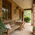 - Exterior Timber Settle: Enhance your porch with a timber settle, perfect for a cozy and inviting atmosphere.