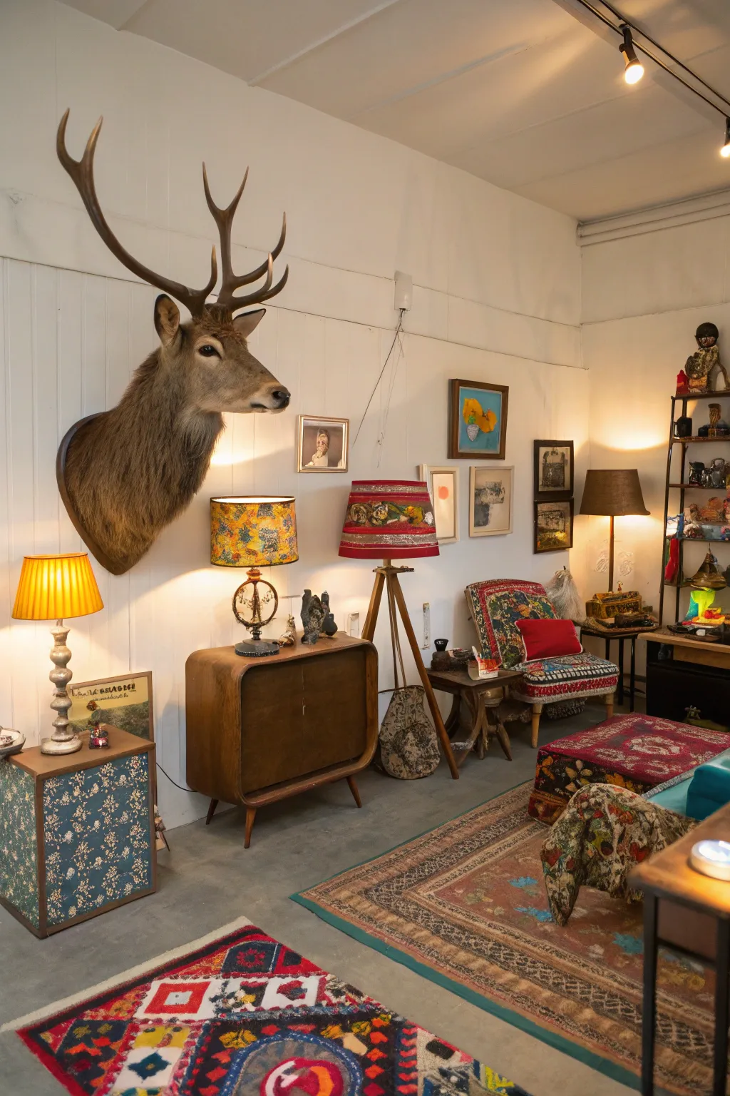 Mix and match with an eclectic amalgamation of decor. I often pair mounts with unexpected items to stimulate conversation and contribute a quirky spin.