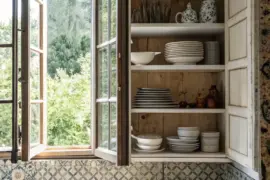 - Secondary material: Fabric textures (upholstery and window treatments)