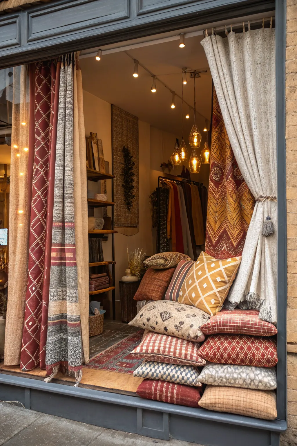 - Luxurious Textile Throws: Incorporate a sense of comfort through arranging these weaves across fixtures in your display.