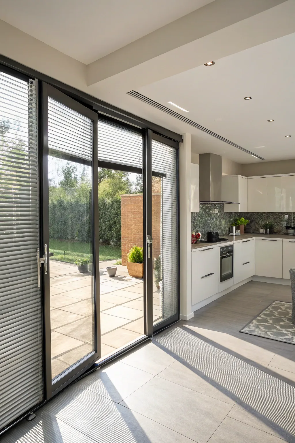 Integrated awnings located within the glass panels yield versatile control over illumination. This attribute represents a favored element in my designs, contributing both practicality and a sophisticated aesthetic.