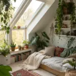 Transform your attic into a greenhouse getaway, adorned with potted plants and plentiful sunlight. This area becomes a calming escape from everyday life.