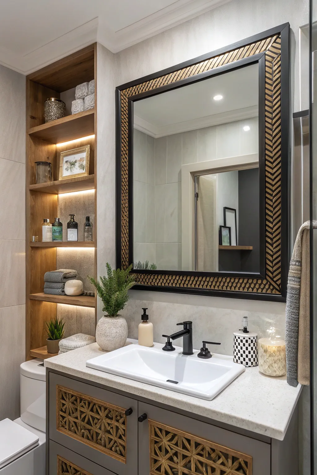 - Ornamental Mirror with Shelving Units: Incorporate elegance and practicality with an ornamental mirror featuring shelving units for refined organization.