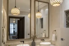 An ornate reflector has the ability to revolutionize your bathroom into a fashionable retreat. I’m fond of employing elaborate or expansive reflectors to incorporate a key feature that also maximizes the space’s luminosity.