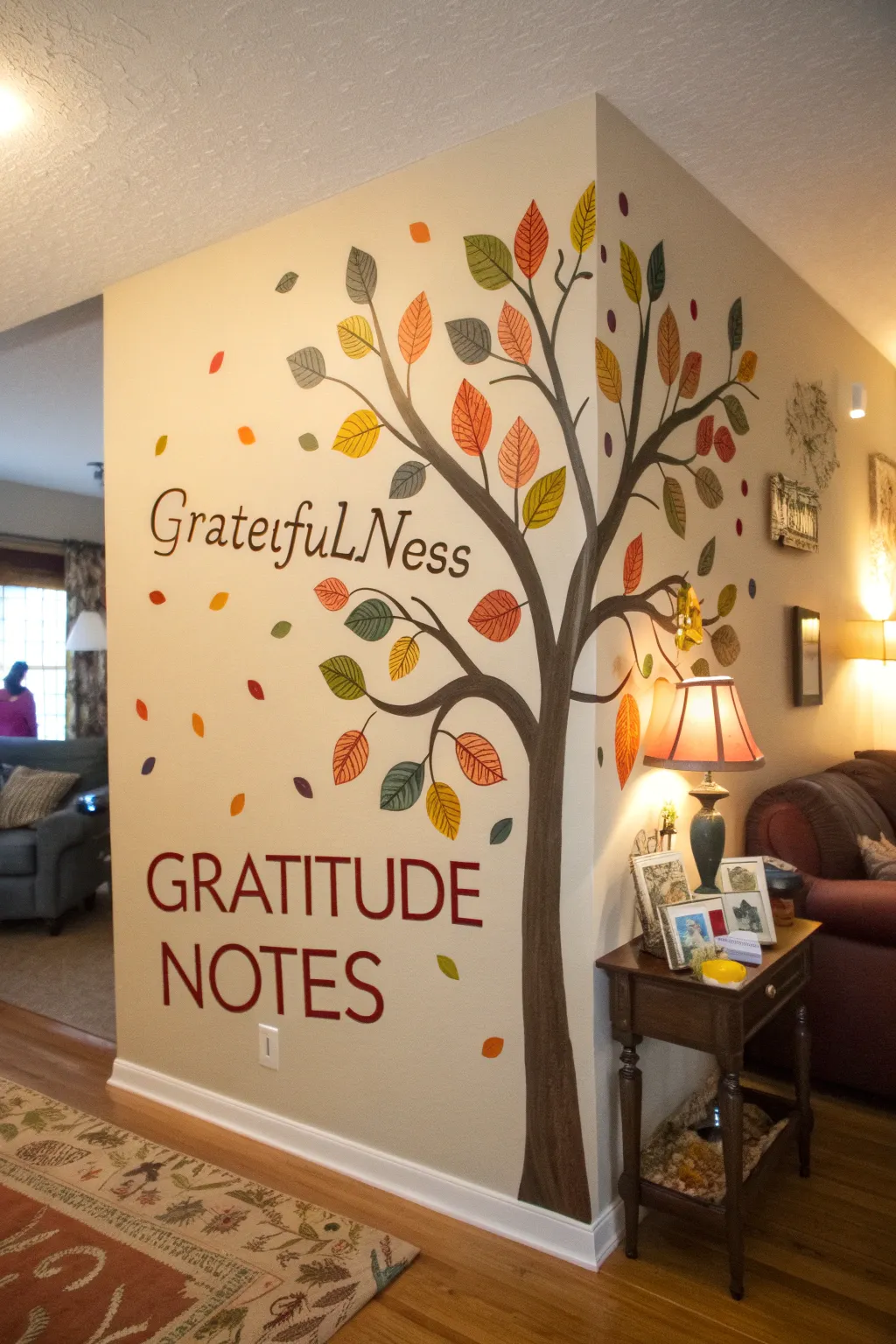 Paint or affix a graphic of an arbor on your display, incorporating leaf-shaped expressions of gratitude over duration. I’ve witnessed this concept infuse a trace of the outdoors and cordiality into a chamber.