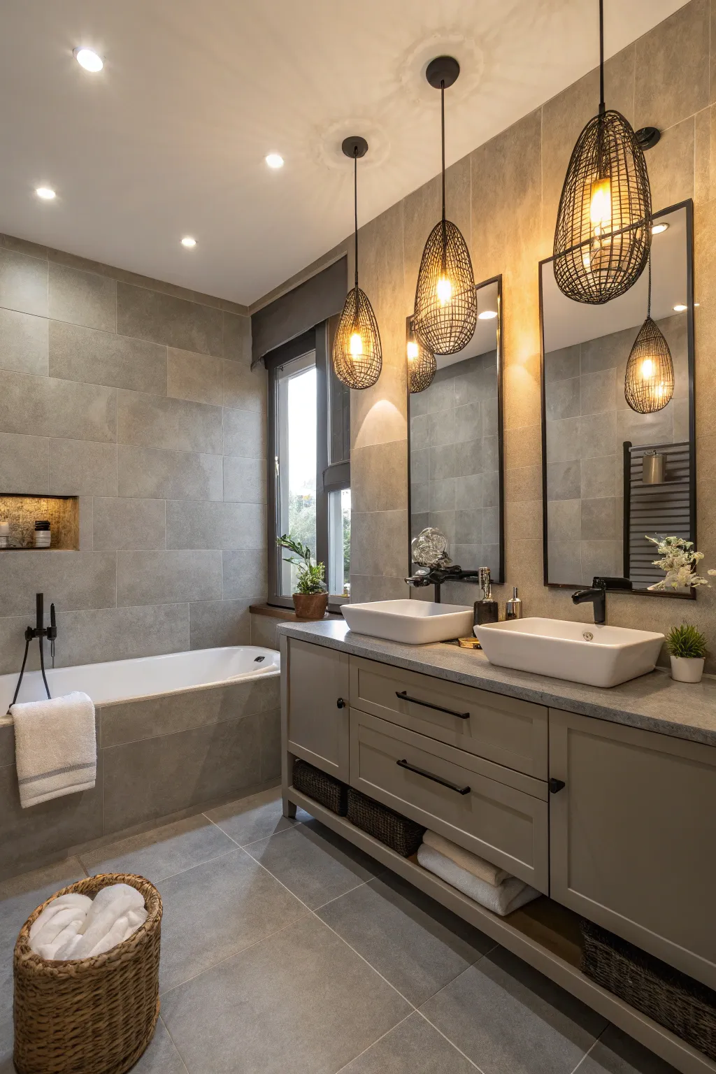 Incorporating a variety of grey hues introduces both depth and character to your bathroom. I am particularly fond of pairing lighter and darker grey tiles to achieve a stunning, multi-layered effect.
