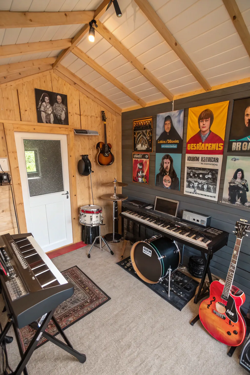 Transform your shed into an acoustic studio for creative expression. This concept resonates with musicians seeking a devoted area to hone their artistry.