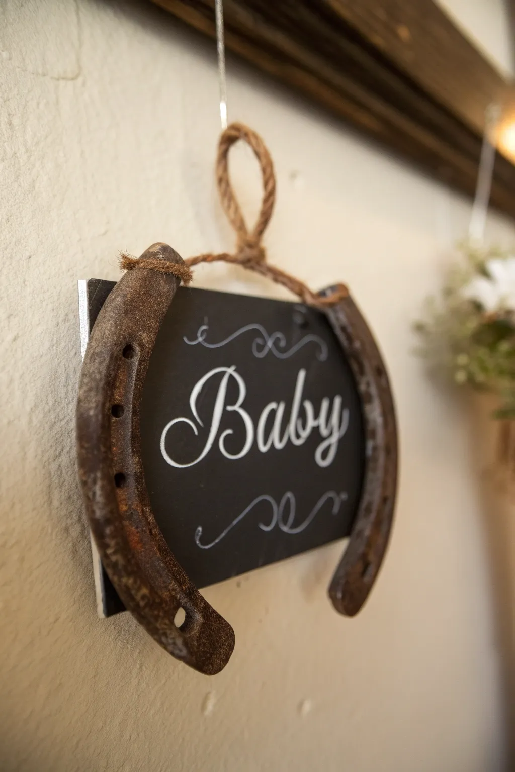 Hang an iron luck charm with a note sharing your news. It’s a tip of the hat to western traditions and conveys good luck!