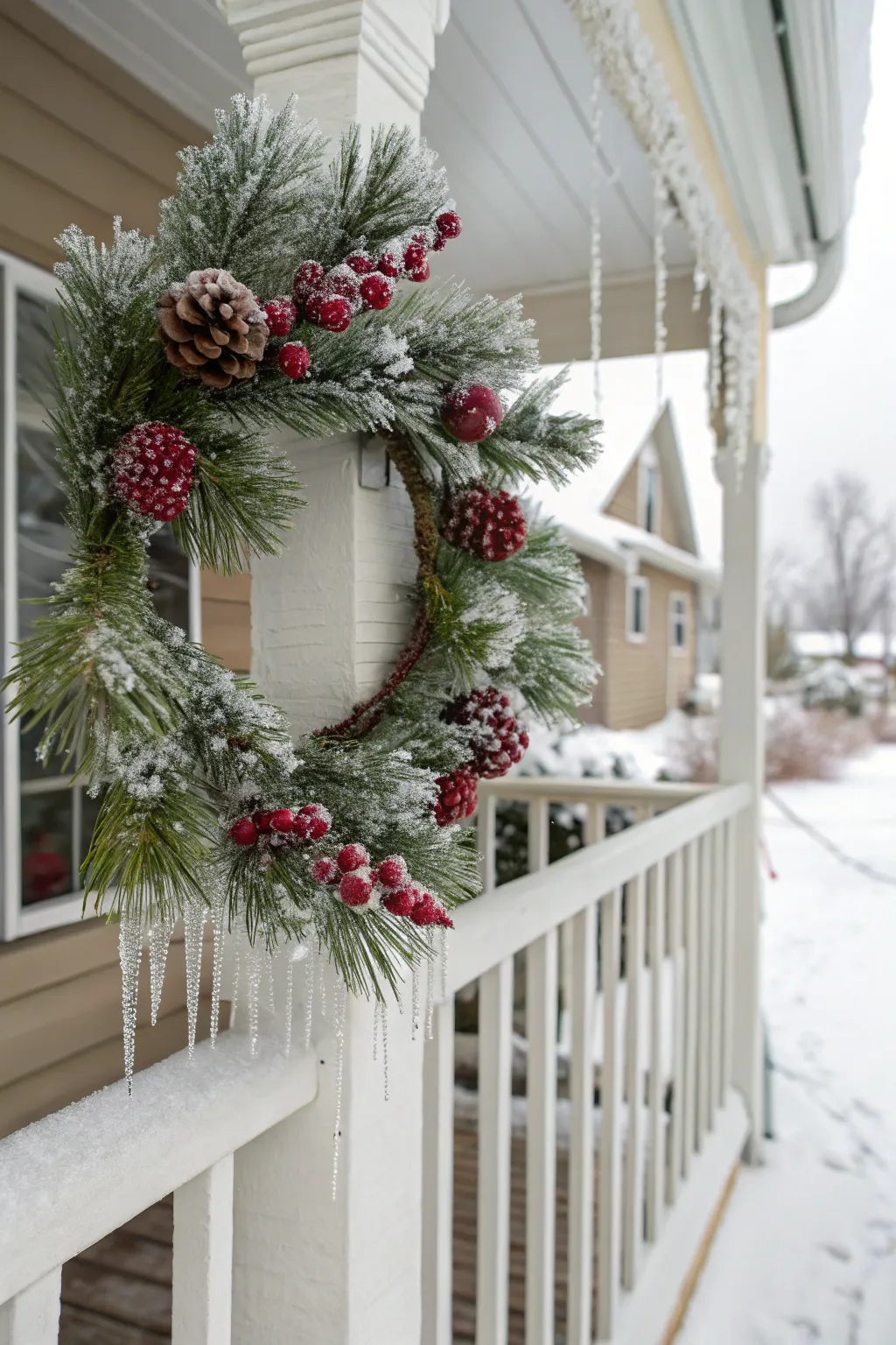 - Simulated Azure Fruit and Shimmering Pine Garland: Refine your door adornment with a chilled accent, ideal for a winter wonderland ambiance.