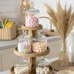 Infuse your repurposed jar with a rustic farmhouse aesthetic by enveloping it in a twine wrap. I am particularly fond of how this understated detail introduces both warmth and palpable texture, rendering it an impeccable centerpiece suitable for any gathering.