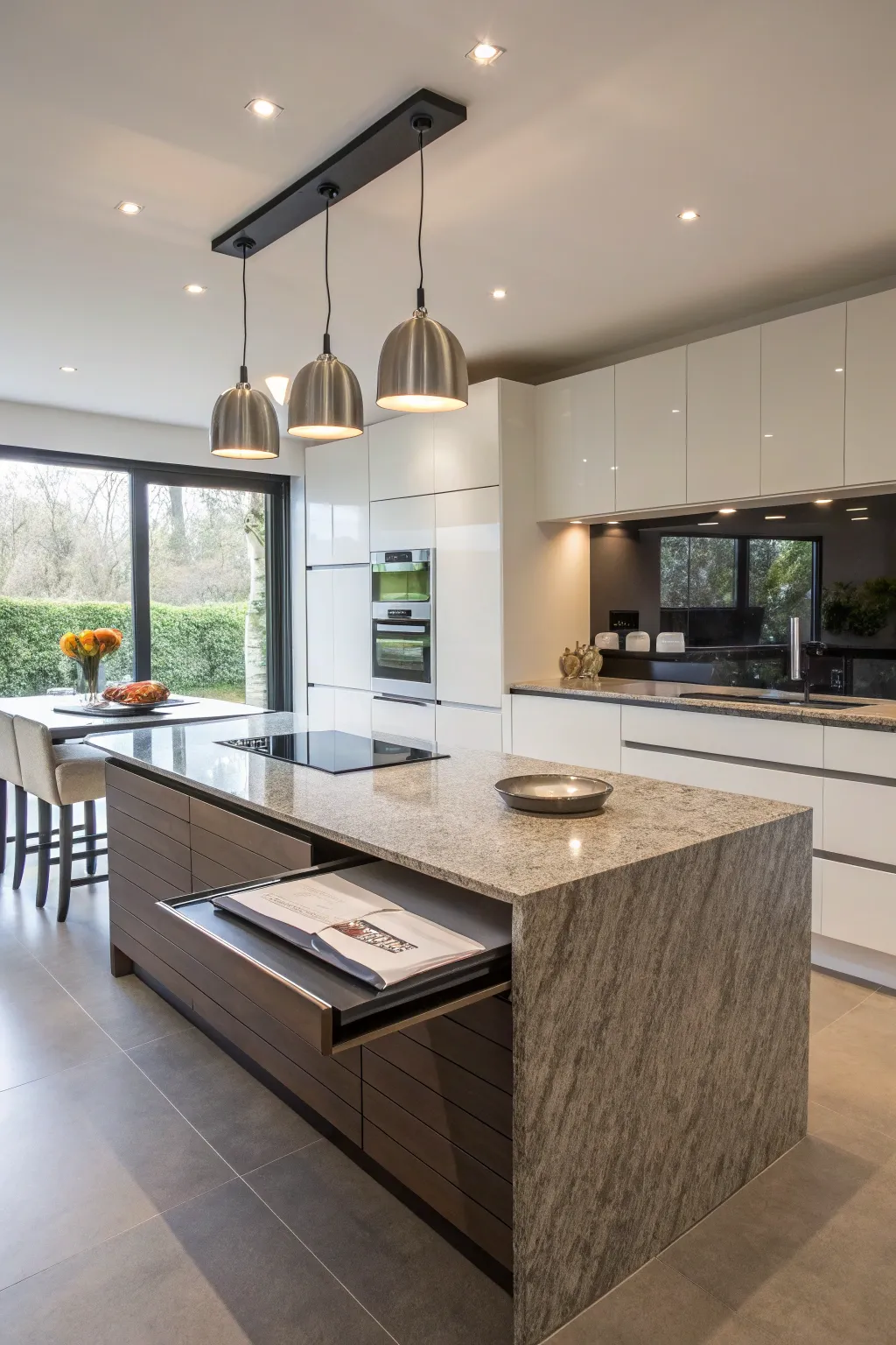 - Hanging Lights: Enhance the atmosphere with elegant pendant lights, perfectly lighting up your kitchen island workspace.