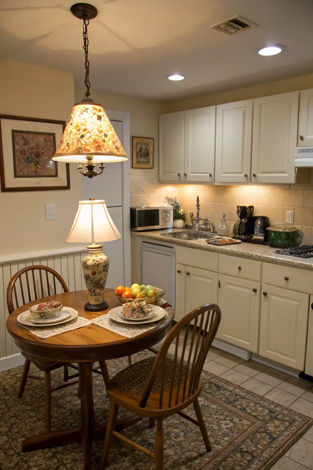 - Classic Clay Desk Lamp: Elevate your kitchen with a vintage ceramic lamp, offering a chic touch and warm ambiance.