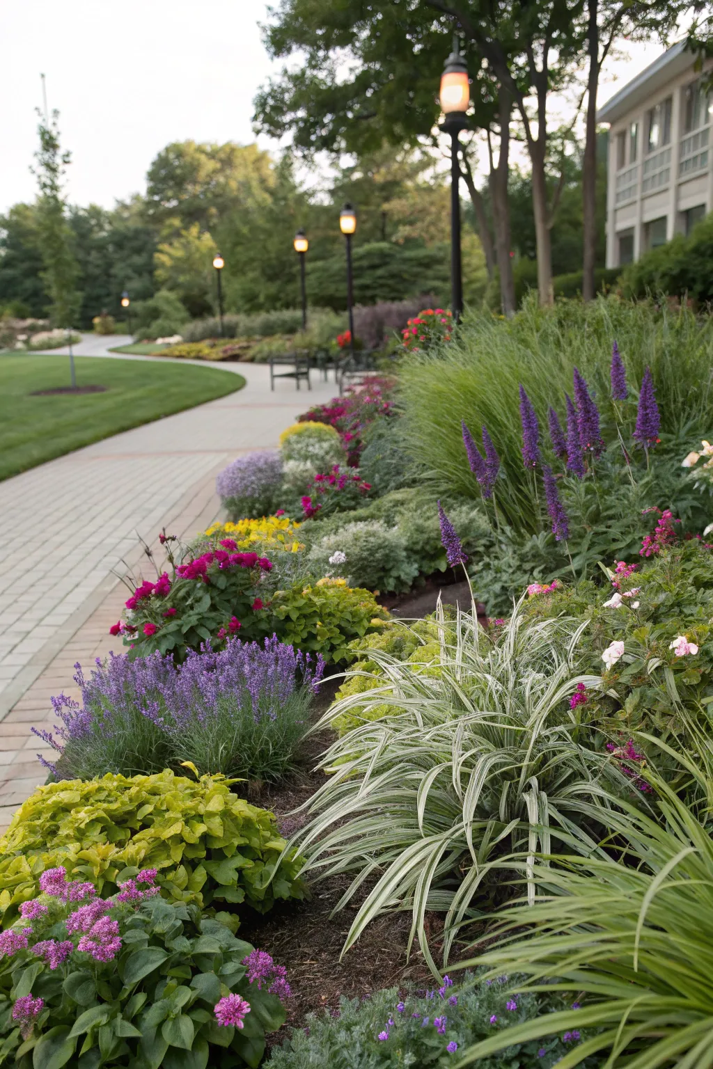Arrange ophiopogon within circular or rounded beds for a manicured, refined aesthetic. This methodology appends a cultured element, rendering curves deliberate and inventive.