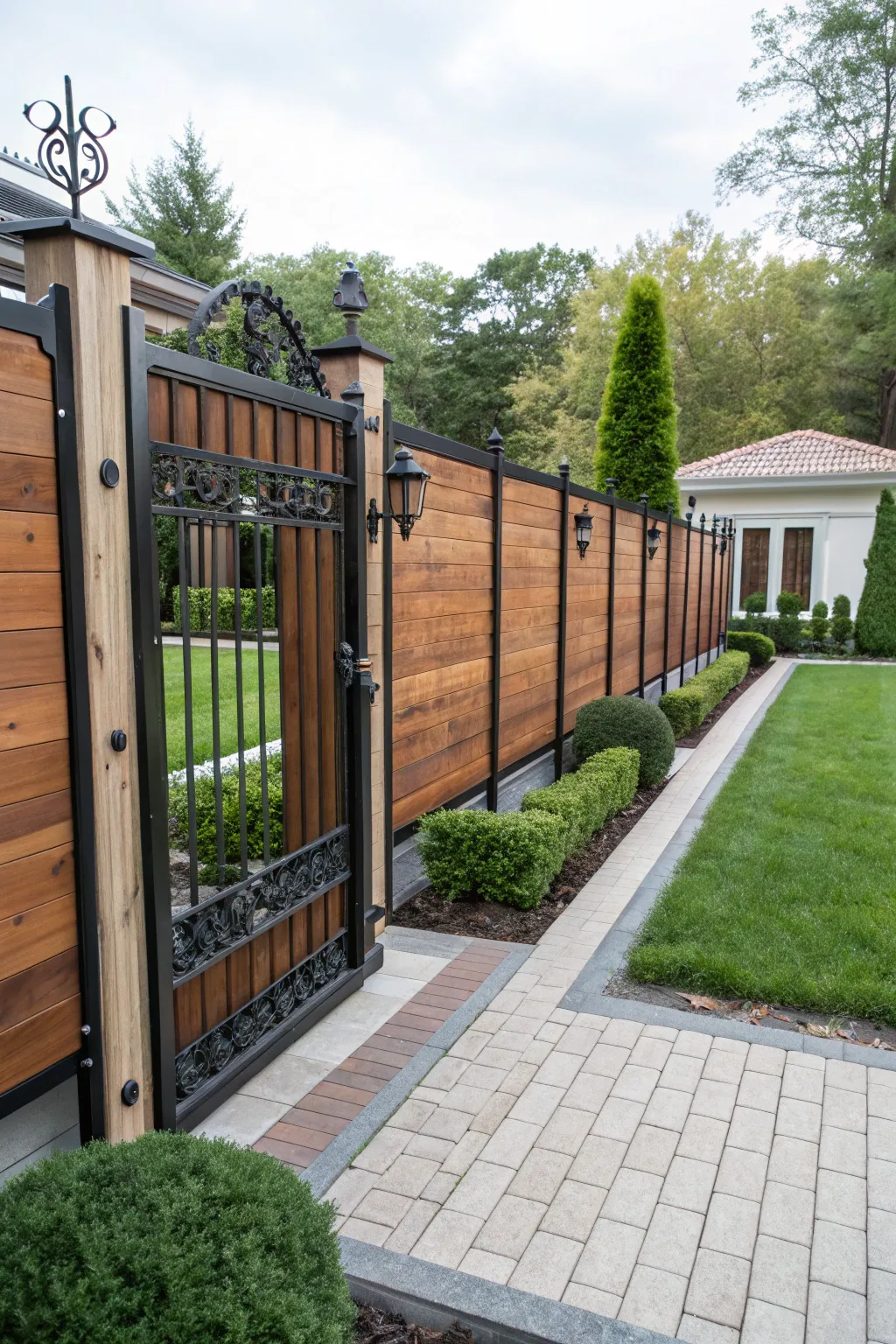 Design a privacy fence with alternating wood and metal sections for a stylish spin. This aesthetic offers seclusion without feeling too closed off.