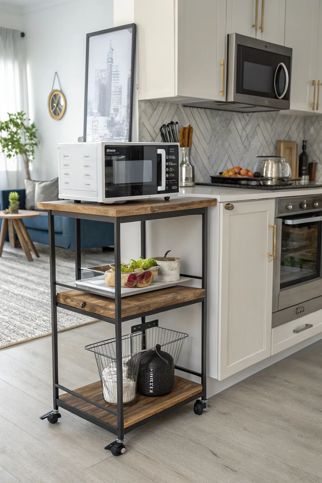 Integrate your microwave trolley with a coffee preparation area for a comprehensive station. My mornings are now more efficient with all essentials conveniently located.