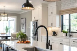 Unite wood and metal components for a modern ambiance adaptable to numerous kitchen décors. It’s a flexible aesthetic that I frequently endorse.
