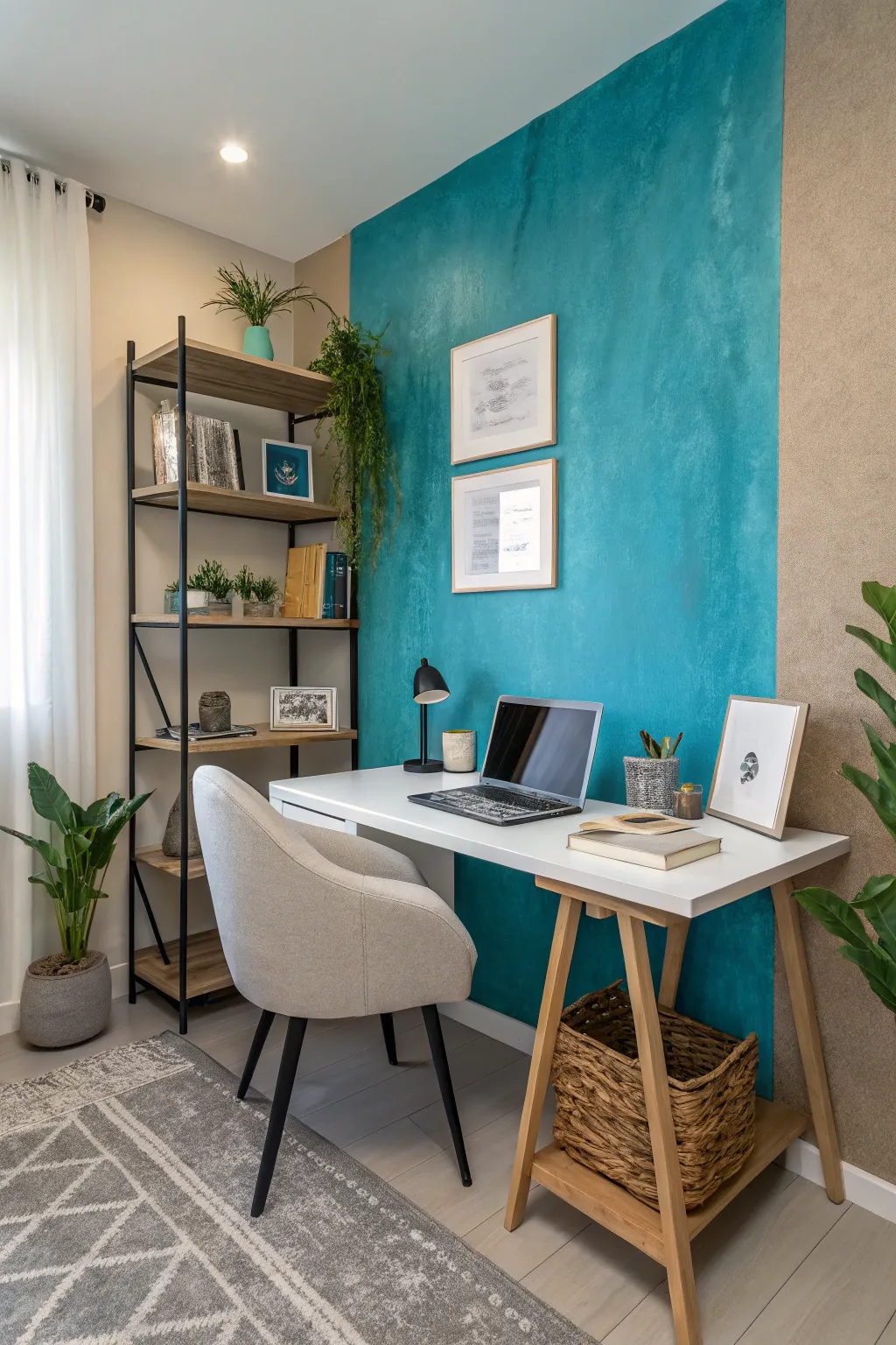 Employ paint or wall coverings to define your office space within a broader room. An audacious accent wall can visually distinguish the area, infusing individuality into your workspace.