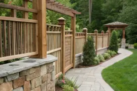 A grill area beneath a pergola, offering both shade and aesthetic appeal.