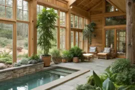 A compact outbuilding or bathhouse can tidily contain all your apparatus and harmonize with your pool’s aesthetic. It’s a functional yet fashionable selection.