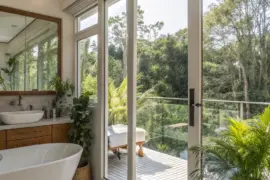 Accentuate your tile design with eye-catching mirrors and chic lighting fixtures. These elements can enhance the tiles and contribute an additional dimension of style.