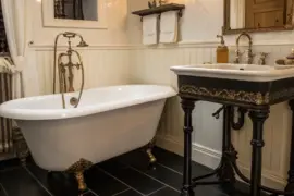 • Slate Effect Expansive Tile: Achieve a refined, natural look with stone-look tiles, perfect for any modern powder room.