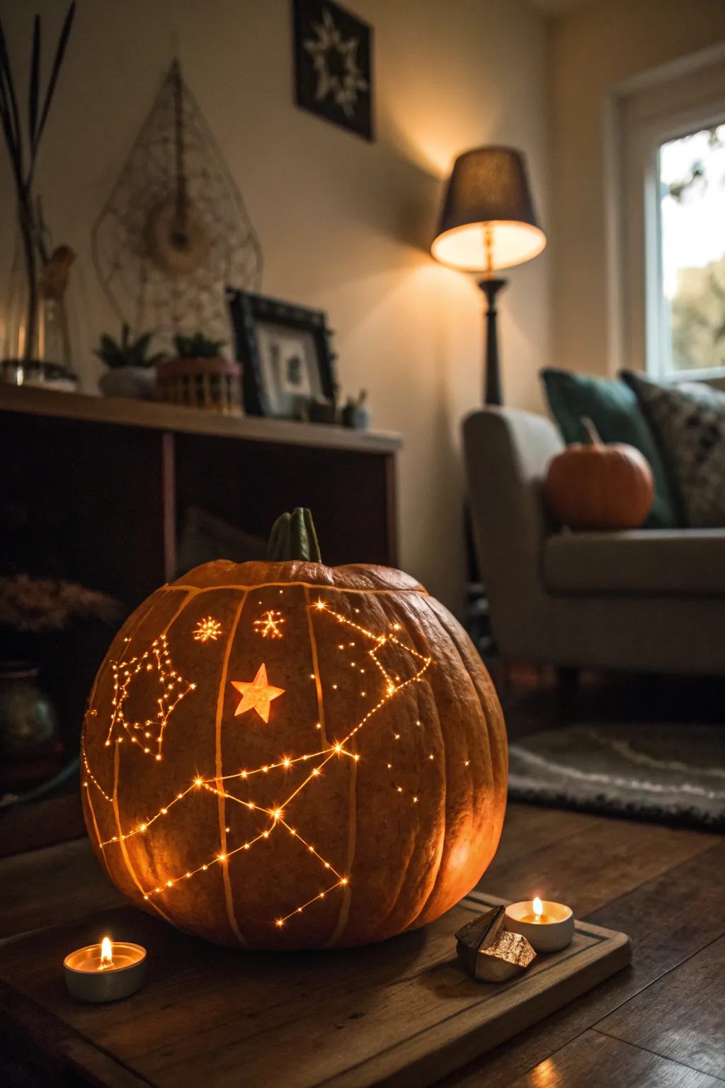 Redesign your pumpkin into a sky brimming with constellations by carefully shaving celestial forms and constellations. It presents a captivating technique to brighten your evenings.