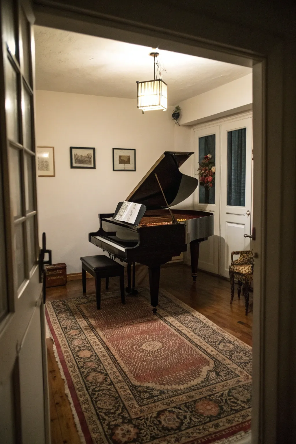 Layer area carpets that showcase varying textures beneath the piano to inject warmth and define the area. This technique not only enhances coziness but also influences acoustics.