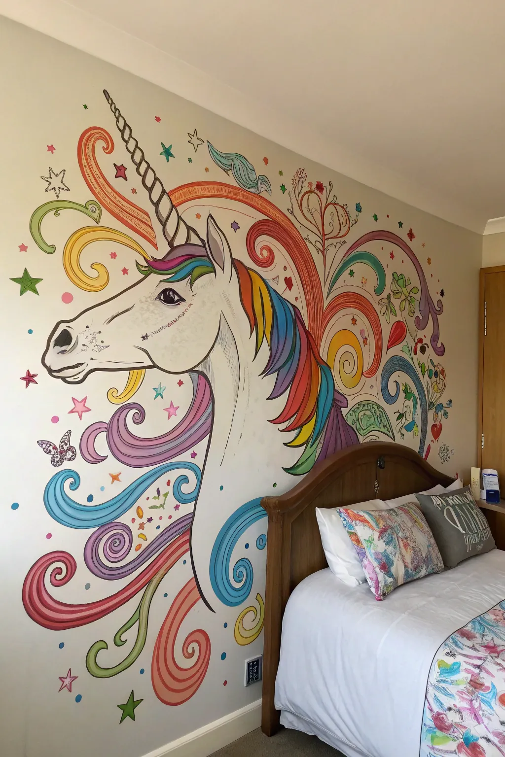 - Unicorn Paper Covering: Fashion a captivating feature wall with unicorn-themed paper covering for an enchanting vibe.