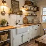 - Salvaged Timber Shelves: Go well with your baked earth backsplash using salvaged timber shelves for added charm.